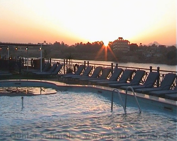 Es staubt, man sieht Armut und Überreste alter und neuer Großmannssucht. Aber so war und ist (allzu) menschliche Geschichte doch immer gewesen – Oder nicht ? Das nennt sich dann „Geschichte zum Anfassen“ – und lohnt sich trotz der manchmal aufkommenden Strapazen. Erholen kann man sich auf dem Sonnendeck des Kreuzfahrtschiffs. Man gleitet heute luxuriöer dahin als die Pharaonen vor Jahrtausenden. Und die Hotels am Roten Meer haben ein riesiges Angebot im Programm, neben den „selbstverständlichen“ täglichen Buffetschlachten, die dort geschlagen werden.